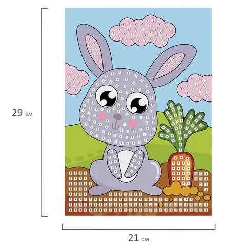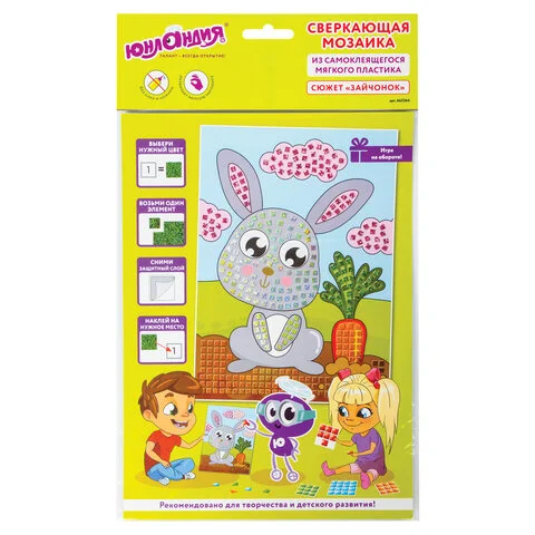 Набор для творчества 'Сверкающая мозаика из мягкого пластика', 'Зайчонок', 21х29 см, ЮНЛАНДИЯ, 66236