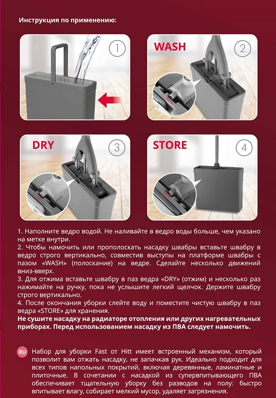 | Комплектация | швабра - 1 шт.; ведро - 1 шт. |