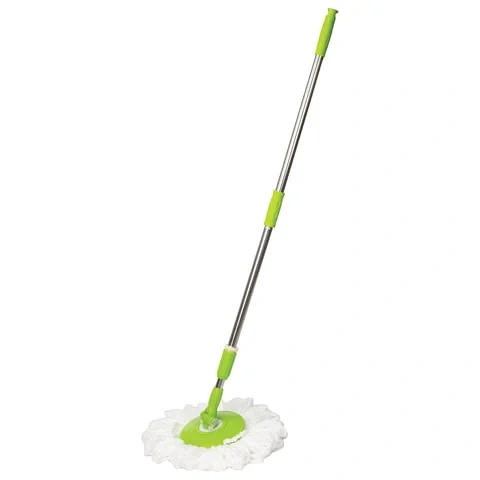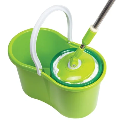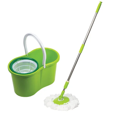 В набор входят: ведро с системой отжима, швабра с круглой насадкой из микрофибры и запасная насадка. Отжим осуществляется нажатием ручки по направлению вниз. Круглая платформа, на которой крепится МОП, вращается относительно оси ручки, что позволяет производить уборку в труднодоступных местах (например, под мебелью). Отжим - центрифуга, приводящаяся в действие нажатием на ручку швабры. Объем ведра из пластика - 7/5 л. Рукоятка телескопическая, позволяет подобрать наиболее удобную длину. Моющий элемент МОПа из микрофибры — чистит без моющих средств. Комплект выполнен в зеленом цвете.