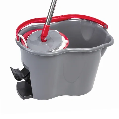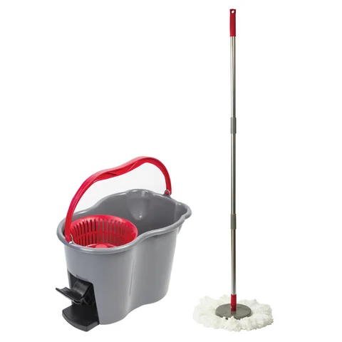 В набор входят: ведро с системой отжима, швабра с круглой насадкой из микрофибры и запасная насадка. Отжим осуществляется нажатием ручки по направлению вниз. Круглая платформа, на которой крепится МОП, вращается относительно оси ручки, что позволяет производить уборку в труднодоступных местах (например, под мебелью). Отжим - центрифуга, приводящаяся в действие нажатием на ручку швабры. Объем ведра из пластика - 14/7 л. Рукоятка телескопическая, позволяет подобрать наиболее удобную длину. Моющий элемент МОПа из микрофибры чистит без моющих средств. Комплект выполнен в сером цвете.
