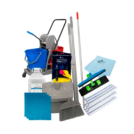 Промонабор MRY3: ПРОФ МАКСИ1058631 Тележка 2х20 пластик с отжимом синяя MRY1037293 Держатель мопов 40см универсальный пластик серый1057046 Моп 40см карман-язык микрофибра с мягким абразивом1060923 Совок-контейнер с крышкой + щетка, серый, MRY1023615 Салфетка ПВА Микро 35х38см голубая1033415 Хозсалфетка универсал 34х40 Микроспан синий1044344 GRASS Универсал 5кг универсальноепенное моющее средство0045964 Перчатки резиновые латексные плотность высокая ХL с хлопковым напылением1060925 Рукоятка 150 см d24 алюминий анодированная красная MRY1060578 Сгон 40 см с рукояткой MRY