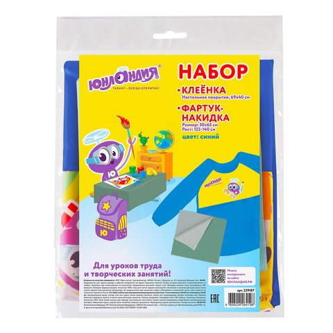 Набор для уроков труда ЮНЛАНДИЯ, клеенка ПВХ 40x69 см, фартук-накидка с рукавами, синий, 229187
