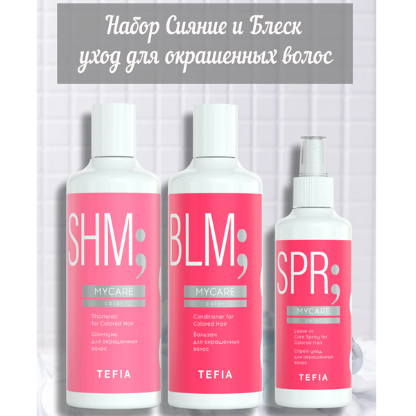 Набор для волос Tefia Mycare Color Сияние и блеск, шампунь, бальзам, спрей