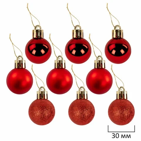9 шаров красного цвета с глянцевым, матовым и 'глиттер'-эффектами (диаметр 3 см),