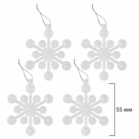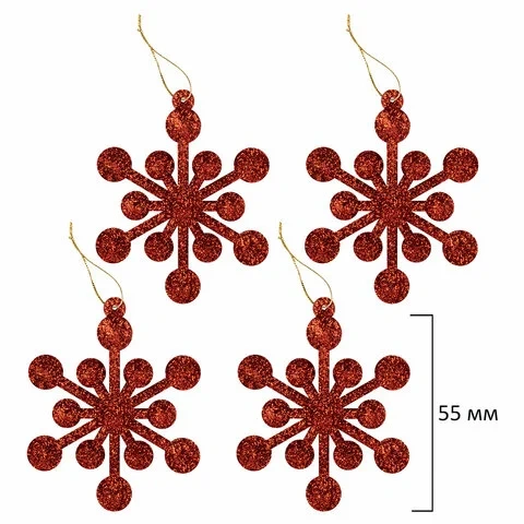 12 украшений белого, красного и зеленого цветов в виде снежинок с эффектом 'глиттер' (размер 3 см),