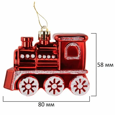 1 украшение красного цвета в виде поезда с глянцевым эффектом (размер 8х5,8х3,3 см),