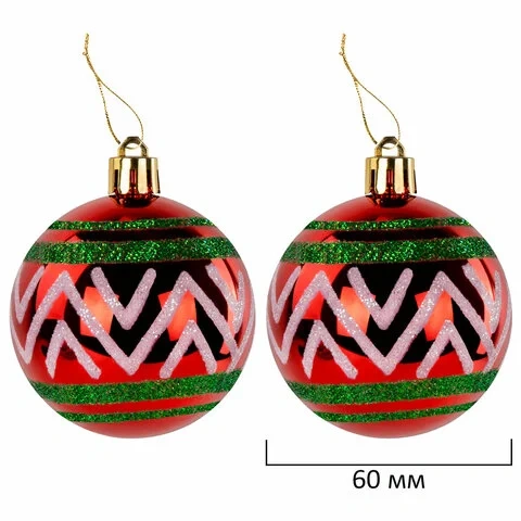 2 шара красного цвета с зеленым и белым рисунком с глянцевым эффектом (диаметр 6 см),