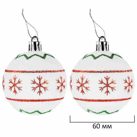 2 шара белого цвета с зеленым и красным рисунком с матовым эффектом (диаметр 6 см),