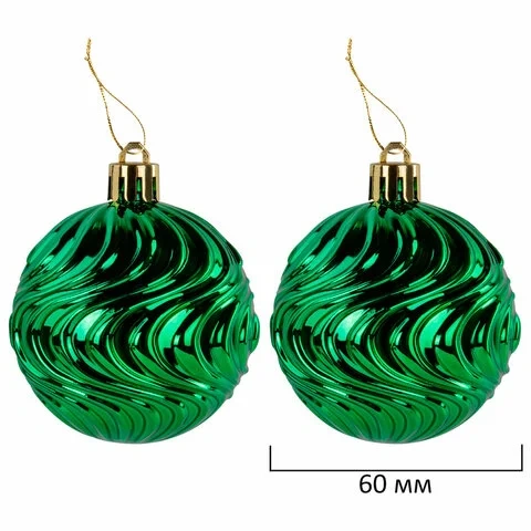 2 шара зеленого цвета с объемным узором с глянцевым эффектом (диаметр 6 см),
