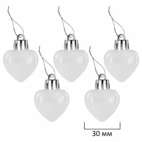 5 украшений белого цвета в виде сердечек с глянцевым эффектом (размер 3 см),