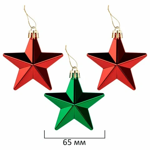 3 украшения красного и зеленого цветов в виде звезды с глянцевым эффектом (размер 6,5 см),