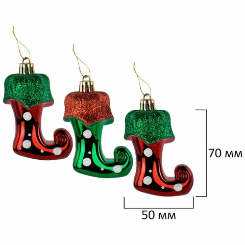 3 украшения зеленого и красного цветов в виде сапог с глянцевым и 'глиттер'-эффектами (размер 7х5 см),