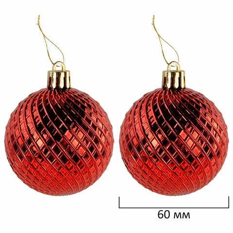 2 шара красного цвета с объемным узором с глянцевым эффектом (диаметр 6 см),