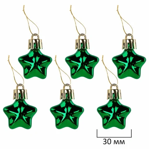 6 украшений зеленого цвета в виде звездочек с глянцевым эффектом (размер 3 см),