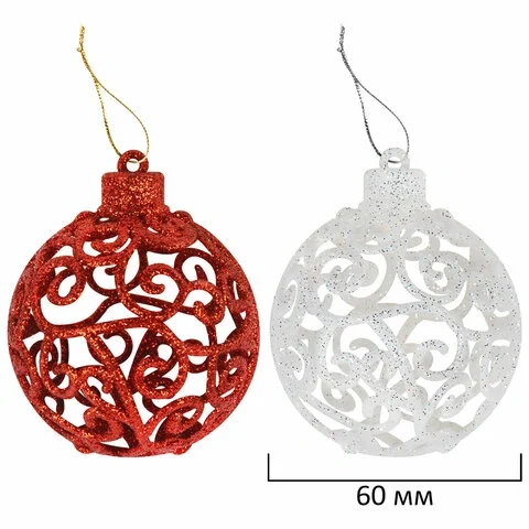 2 шара белого и красного цветов с узорными вырубками с эффектом 'глиттер' (диаметр 6 см),