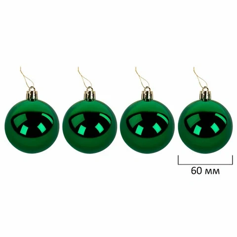 4 шара зеленого цвета с глянцевым эффектом (диаметр 6 см),