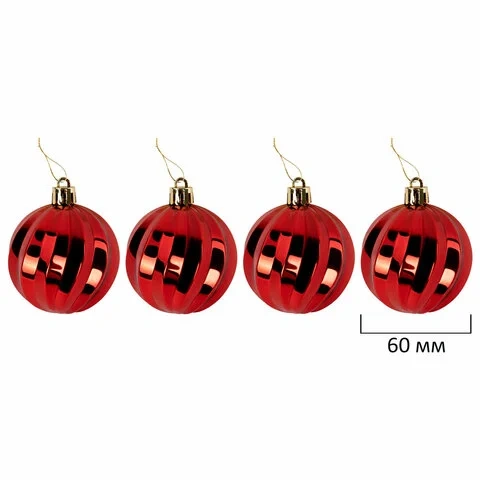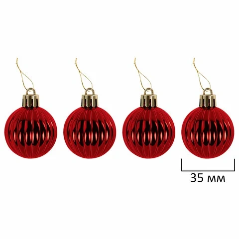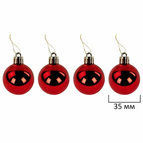 4 шара красного цвета с глянцевым эффектом (диаметр 4 см),