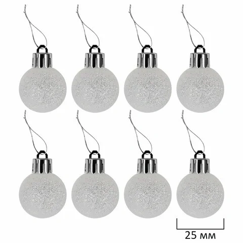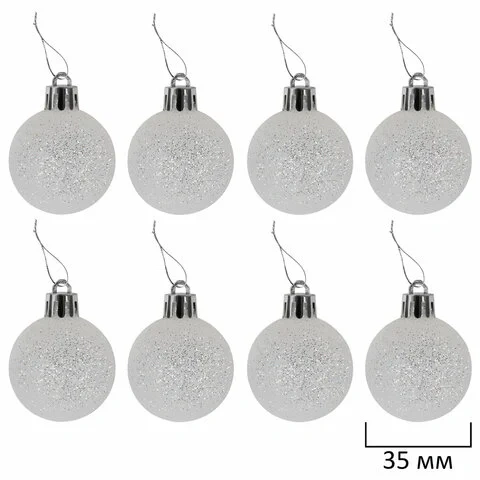 8 шаров белого цвета с эффектом 'глиттер' (диаметр 3 см),