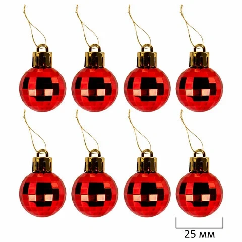 8 шаров красного цвета в виде диско-шара с глянцевым эффектом (диаметр 3 см),