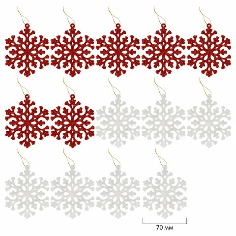14 украшений красного и белого цветов в виде снежинок с эффектом 'глиттер' (размер 7 см),