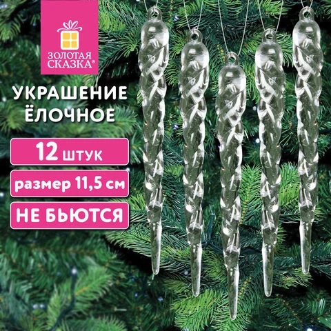Набор елочных игрушек Золотая Сказка Сосульки акриловые, 11.5см, 12шт/уп