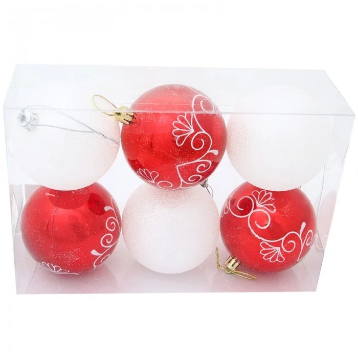 Набор пластиковых шаров 6 шт, 80 мм, красный/белый с рисунком