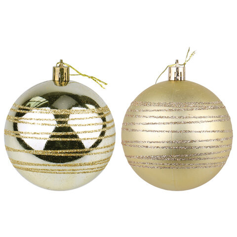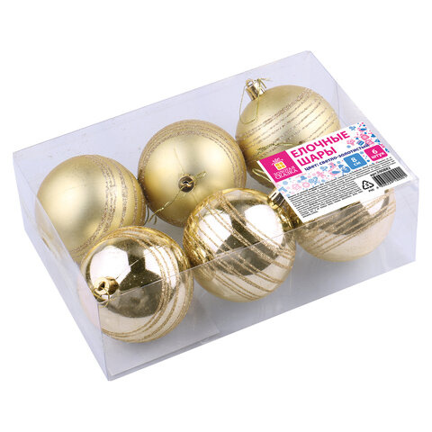 Набор елочных шаров Золотая Сказка 80мм, светлое золото, 6шт, пластик, с узором