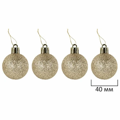 4 шара золотого цвета с эффектом 'глиттер' (диаметром 4 см),