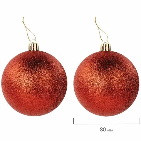 2 шара красного цвета с эффектом 'глиттер' (диаметром 8 см),