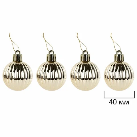 4 шара золотого цвета с глянцевым эффектом (диаметром 4 см),
