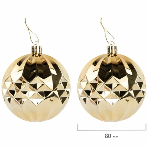 2 шара золотого цвета с глянцевым эффектом (диаметром 8 см),