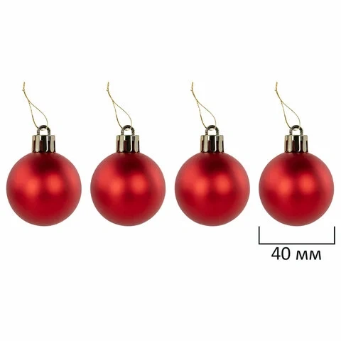 4 шара красного цвета с глянцевым эффектом (диаметром 4 см),