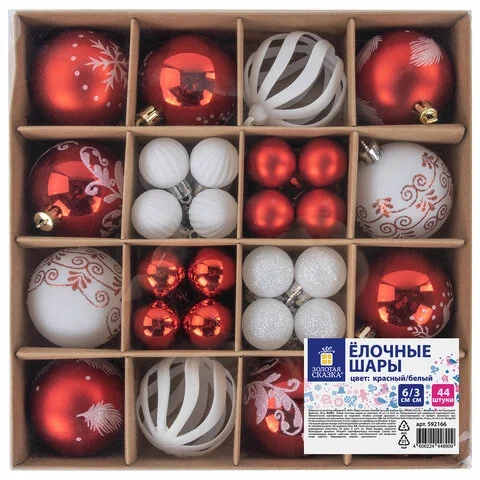 Набор елочных шаров Золотая Сказка Red&White 44ш/уп, пластик