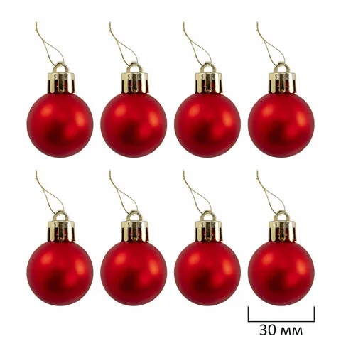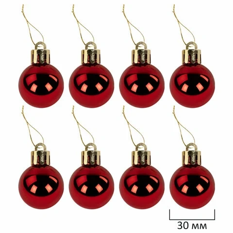 8 шаров красного цвета с глянцевым эффектом (диаметром 3 см),