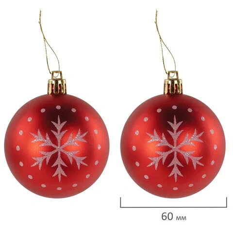 4 шара красного цвета с белыми узорами с матовым эффектом (диаметром 6 см),