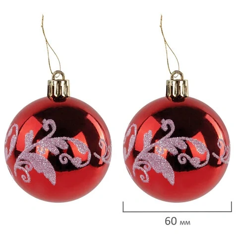 2 шара белого цвета с красными узорами с глянцевым эффектом (диаметром 6 см),