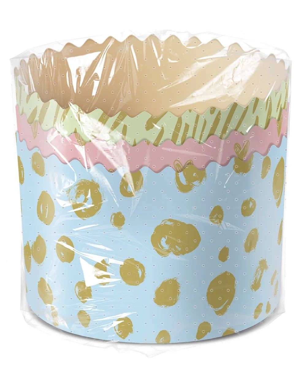 Набор пасхальный Формы для кулича бумажные 124х90 мм 3 шт в ассортименте – одноразовые формы для удобного выпекания и хранения куличей. Изготовленные из специальной бумаги с микроперфорацией, они не дают готовой выпечке засохнуть или отсыреть. Такие формочки помогут существенно сэкономить время, ведь их не нужно смазывать маслом перед выпеканием, а затем отмывать от присохших остатков мучного изделия. Выбирайте надежный рецепт, замешивайте тесто, выпекайте куличи в духовом шкафу и не забудьте про глазурь и кондитерскую посыпку.