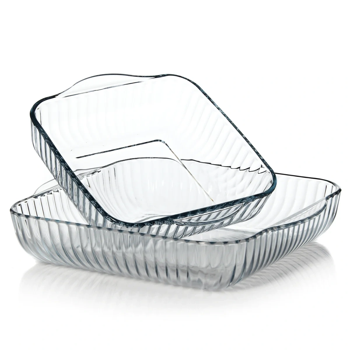 Набор посуды для запекания состоит из двух квадратных форм разного размера. Посуда изготовлена из жаропрочного стекла. Подходит для использования в микроволновой печи и духовке. Нельзя использовать на открытом огне. Состоит из двух круглых форм для микроволновой печи, изготовленных из термостойкого стекла. Будет отличным выбором для всех любителей блюд, приготовленных в духовке, микроволновой печи. Форма не вступает в реакцию с готовящейся пищей, а потому не выделяет никаких вредных веществ, не подвергается воздействию кислот и солей. Из-за невысокой теплопроводности пища в стеклянной посуде гораздо медленнее остывает. Стеклянная посуда очень удобна для приготовления и подачи самых разнообразных блюд: супов, вторых блюд, десертов. Благодаря прозрачности стекла, за едой можно наблюдать при ее готовке, еду можно видеть при подаче, хранении. Используя эту форму, вы можете как приготовить пищу, так и изящно подать ее к столу, не меняя посуды. Форма может быть использована в духовках, микроволновых печах и морозильных камерах (выдерживает температуру от - 30C до 300C). Можно мыть и сушить в посудомоечной машине.