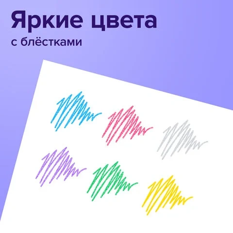Набор гелевых ручек Brauberg Zero Kids 6 цветов, 1мм, 6шт/уп, с блестками