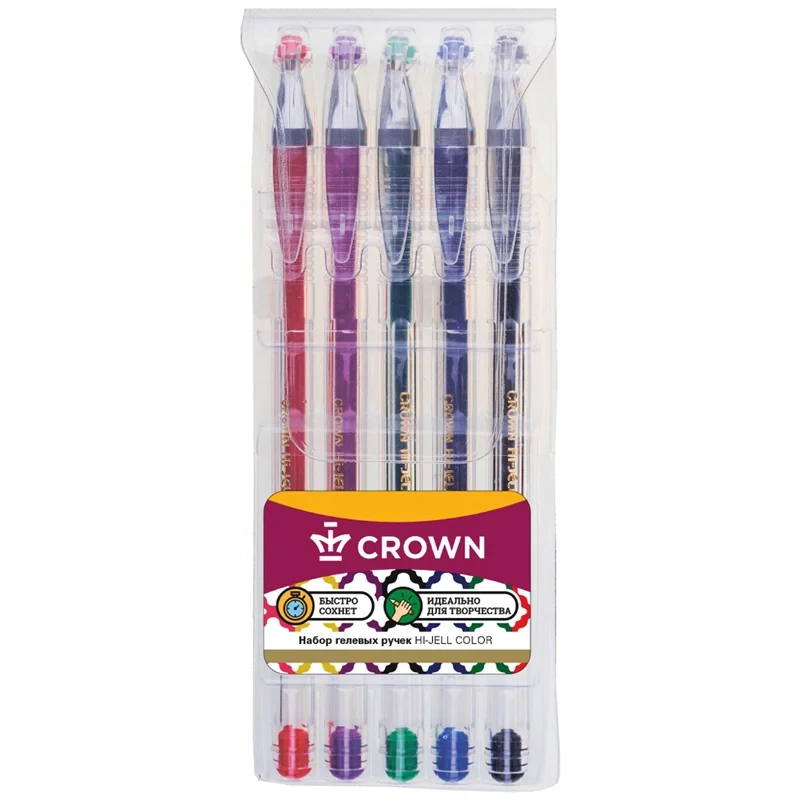 Набор гелевых ручек Crown Hi-Jell Color 5 цветов, 0.5мм