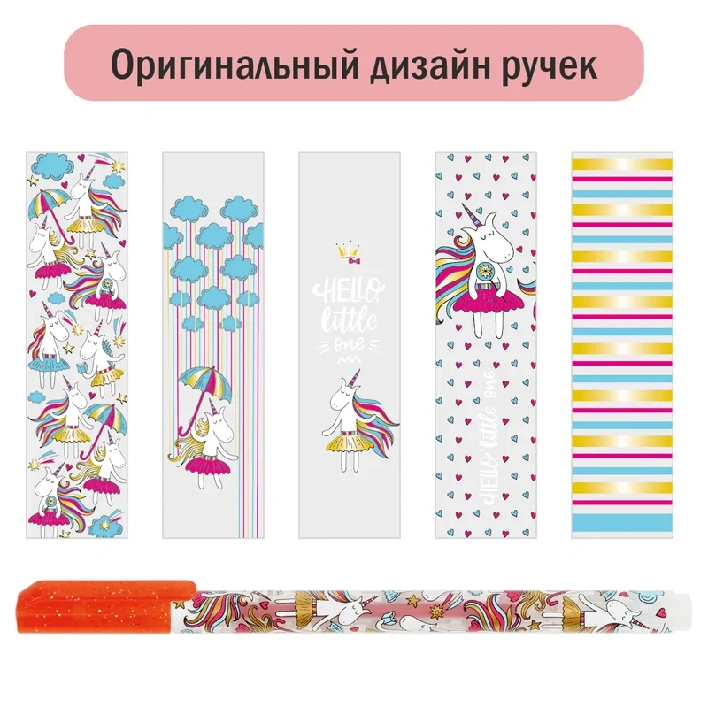 Набор гелевых ручек ArtSpace Shiny Unicorn с блёстками поможет сделать самый красочный рисунок. В наборе 10 цветов: жёлтый, зелёный, голубой, фиолетовый, розовый, оранжевый, серый, синий, чёрный, красный. Диаметр пишущего узла – 1 мм, а толщина линии письма – 0,8 мм, благодаря чему ручки пишут мягко и без пропусков. Длина письма варьируется от 200 до 250 метров. Корпус с рисунком сделан из высококачественного пластика. Гелевые чернила на водной основе обладают высокой светостойкостью. Гелеобразные чернила и специальная технология пишущего узла обеспечивают мягкое и комфортное письмо. Набор упакован в пластиковый пенал с европодвесом.