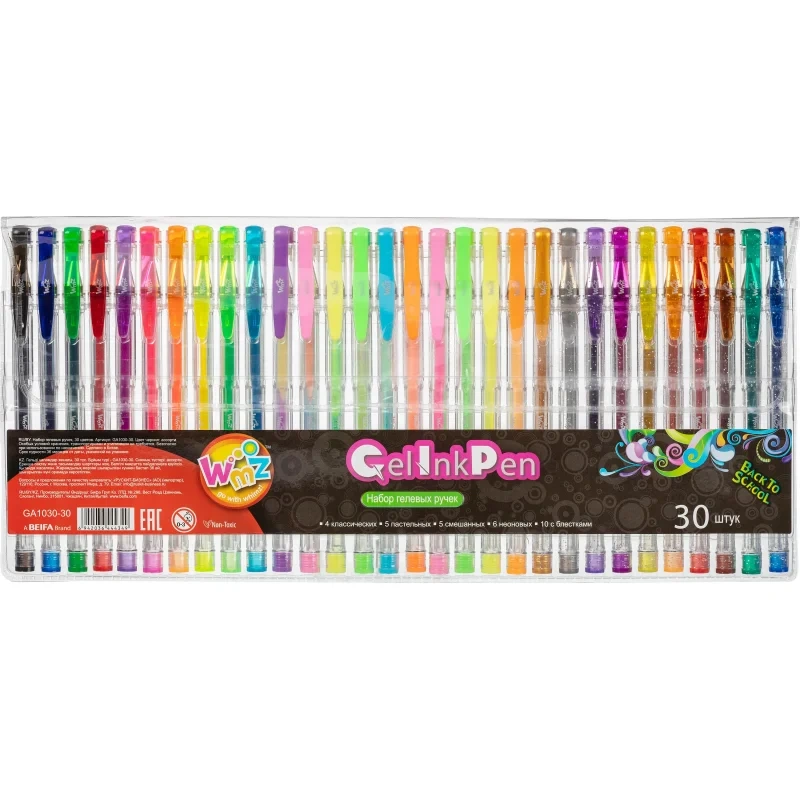 Набор гелевых ручек Beifa Wmz 30 цветов, 0.7мм, 30шт/уп, прозрачный корпус