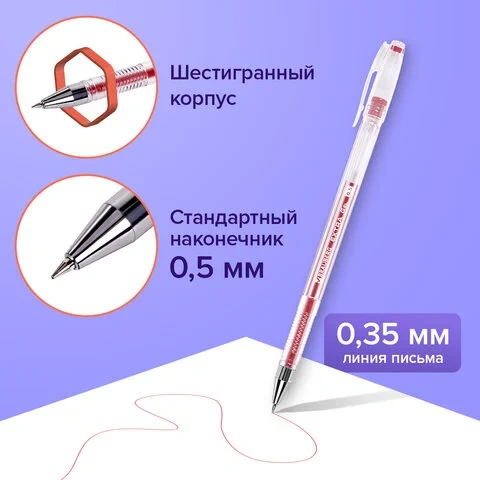 Гелевые ручки имеют шестигранный прозрачный корпус с рифленой поверхностью в зоне захвата. Детали ручек выполнены в цвет чернил. Сменный стержень длиной 130 мм со стандартным наконечником позволит использовать ручки максимально долго. Диаметр пишущего узла, равный 0,5 мм, создает линию письма, равную 0,35 мм. Японские чернила MIKUNI с насыщенным пигментом обеспечивают непревзойденное качество письма. Цвет чернил - синий, черный, красный, зеленый.