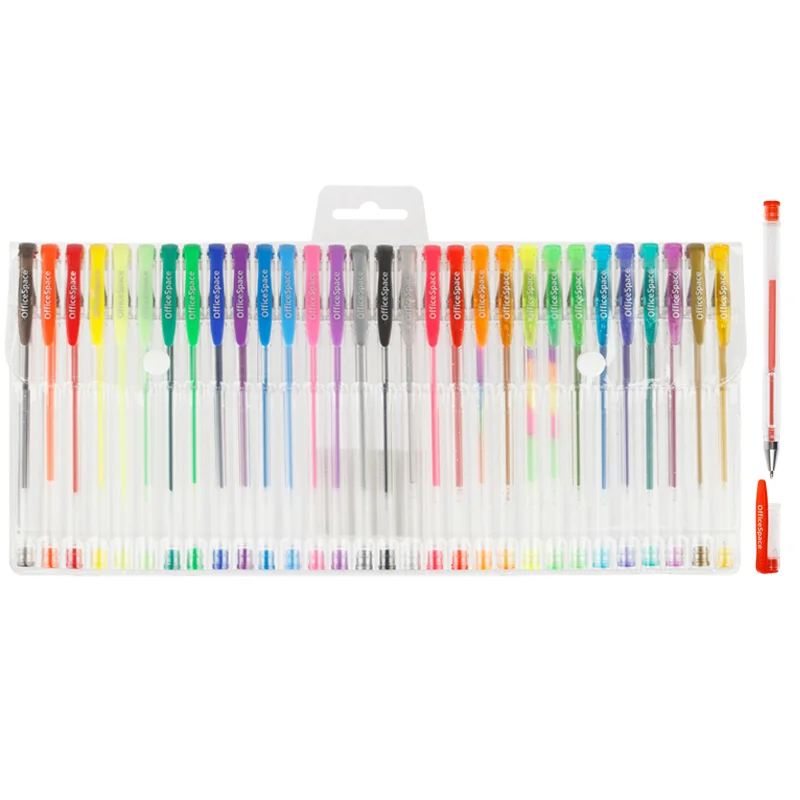 Набор гелевых ручек OfficeSpace 'Megaset' 30шт., 30цв., 1,0 мм, корпус ассорти, европодвес