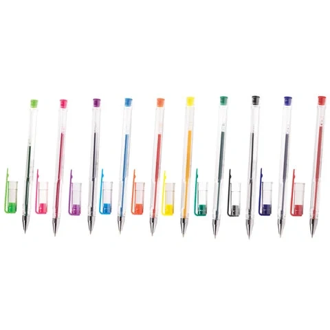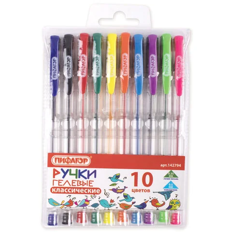 Набор гелевых ручек Пифагор 10 цветов, 0.35мм, прозрачный корпус