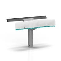 Полиамидный оконный скребок со сменным лезвием, фиксатором-рычагом, системой крепления Lampo и алюминиевой опорой для мойки окон с микрофибровым чехлом. Система очистки стекла с флисом и скребком идеально подходит для мытья и сушки окон одним инструментом. Эко-дружественный: изготовлен из нержавеющих, прочных и перерабатываемых пластиковых компонентов. Используемые материалы включают переработанную нержавеющую сталь.