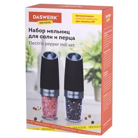 Набор гравитационных мельниц для соли и специй, электрические, 2 шт., PM-6, DASWERK, 456624