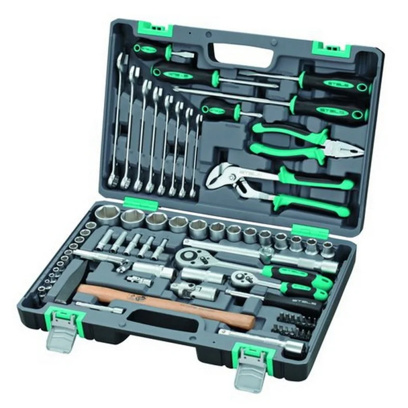 Набор инструмента автомобильный Stels 76 предметов (14104) состоящий из 76 предметов, упакованных в пластиковый кейс с металлическими замками-защелками и индивидуальными отделениями.