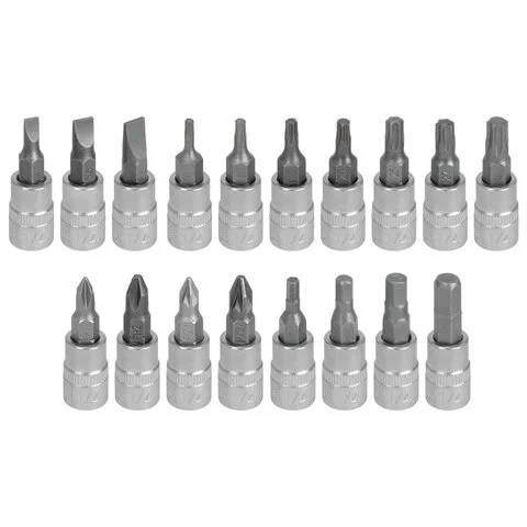 18 ШТ. - БИТЫ ДЛЯ ТРЕЩОТОК 1/4' (SL: 4, 5.5, 6.5; PH: 1, 2; PZ: 1, 2; HEX: 3, 4, 5, 6; T: 8, 10, 15, 20, 25, 27, 30)