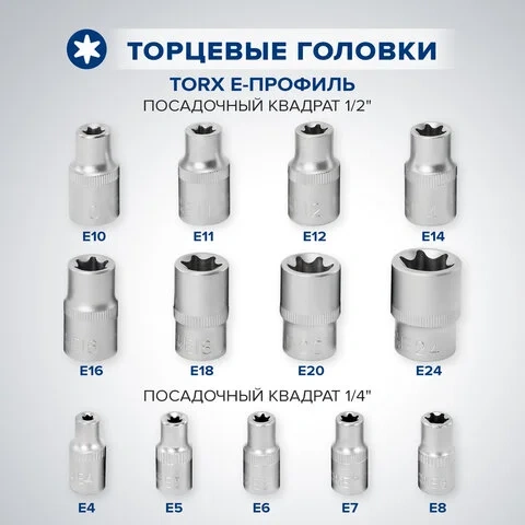 8 ШТ. - ТОРЦЕВЫЕ ГОЛОВКИ TORX 1/2' (E10, E11, E12, E14, E16, E18, E20, E24)